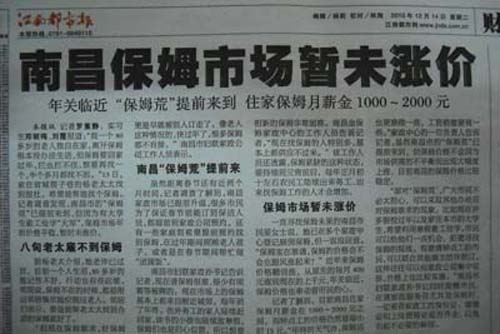 南昌“保姆荒”提前來